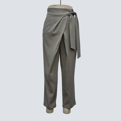 Designer Tie-waist Skirt-style Casual Pants Grey-green Fake Two-piece Wide-leg Pants