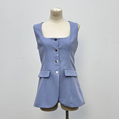 Black Square Neck Sleeveless Short Single-breasted Commuter Vest Top