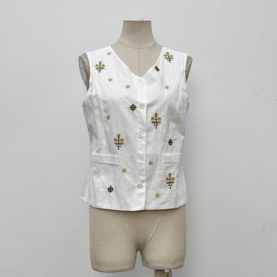 V-neck Button-up Embroidered Sleeveless Vest for Women