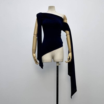 Navy Velvet Off-Shoulder Top with Drape Detail
