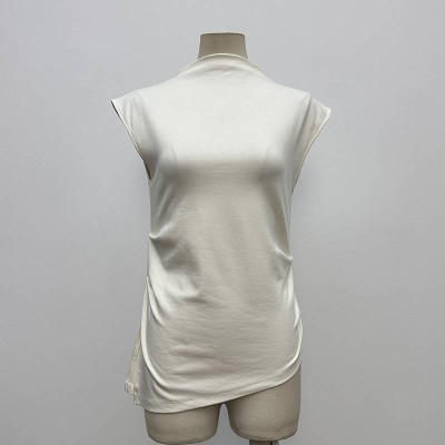 Simple Mock Neck Sleeveless Pleated Asymmetrical Hem Top