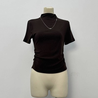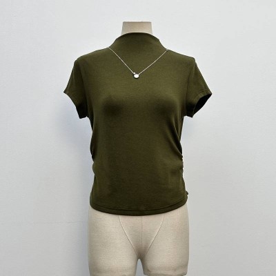 Mock Neck Short Sleeve Knit Slim Ruched Base Top