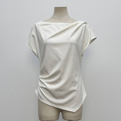 Simple Off-Shoulder Short Sleeve Top Slim Irregular Hem Solid Color T-shirt