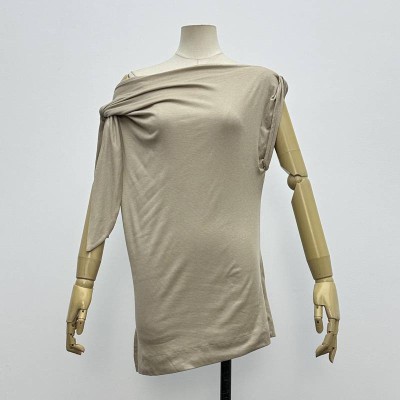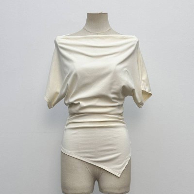 Asymmetrical Neck Twist Short-sleeve T-shirt Slim Fit Stylish Top