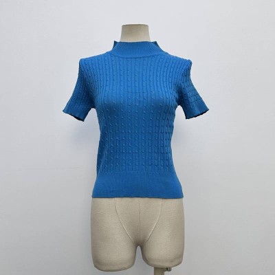 Mock Neck Short Sleeve Cable Knit Slim Fit Cropped Top