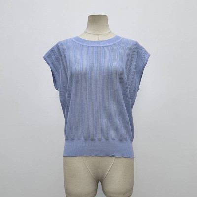 Light Blue Crew Neck Sleeveless Knit Top Loose Thin Breathable Knitwear