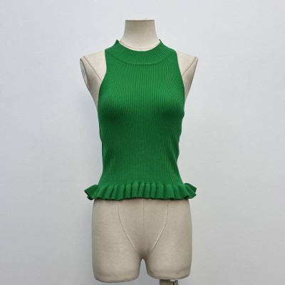 Green Sleeveless Halter Knitted Vest Ruffled Short Slim Fit Inner Wear Top