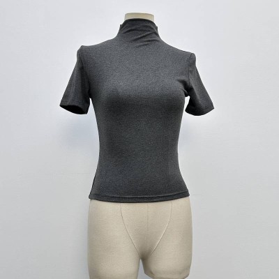 Gray Mock Neck Short Sleeve Knitted Slim Fit Base Top