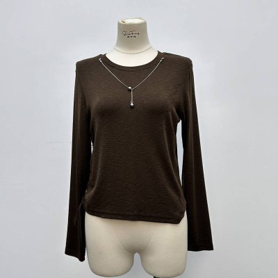 Brown Crew Neck Long Sleeve Drawstring Short Knit Top Fashion Versatile Inner & Outer Wear Top