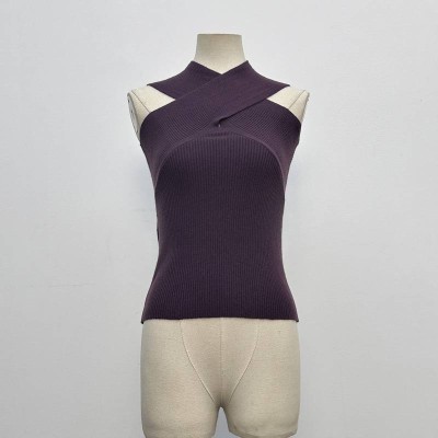 Cross Halter Neck Sleeveless Slim Knit Top