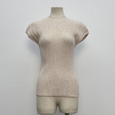 Light Apricot Ribbed Knit Sleeveless Top Slim Crew Neck Knit Base Top