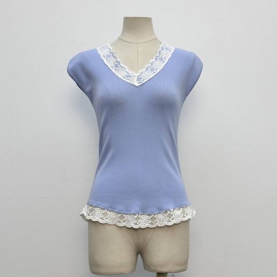 V-neck Lace Trim Knitted Sleeveless Top Slim Fit Inner Wear Basic Shirt