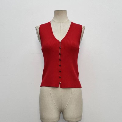 Red V-neck Buttoned Knit Sleeveless Top