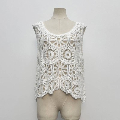 Hand Crochet Hollow Out Sleeveless Top Retro Loose Knit Cover Up