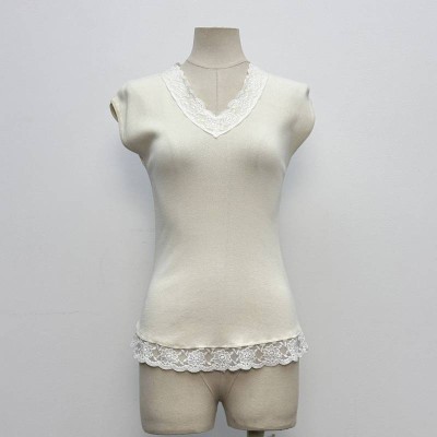 V-neck Lace Trim Sleeveless Knit Top Slim Fit Inner Wear Base Shirt