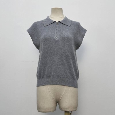 Simple Grey Collar Zipper Sleeveless Knitted Top