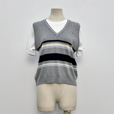 V-neck Color Block Striped Knitted Sleeveless Vest Layered Outer Wear Tank Top
