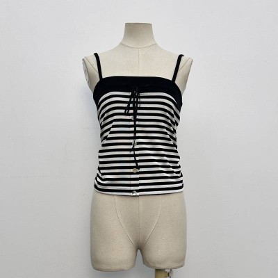 Black and White Striped Lace-up Camisole