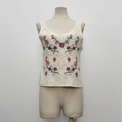 Vintage Embroidered Crochet Knitted Camisole, Artistic Style Sleeveless Top