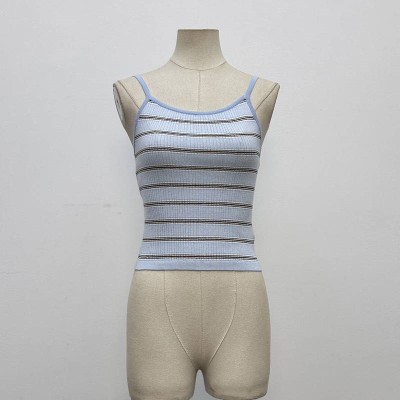 Light Blue Striped Knit Camisole Slim Fit Cropped Inner Wear Top