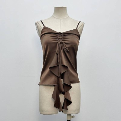 Satin Drawstring Camisole Irregular Ruffle Sleeveless Top