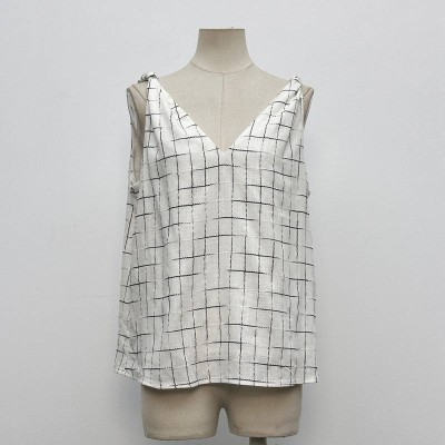 Minimalist Grid V-neck Camisole Loose Sleeveless Top