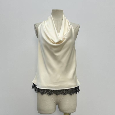 Satin Halter Neck Lace Trim Sleeveless Vest Elegant Inner Wear & Outer Wear Top