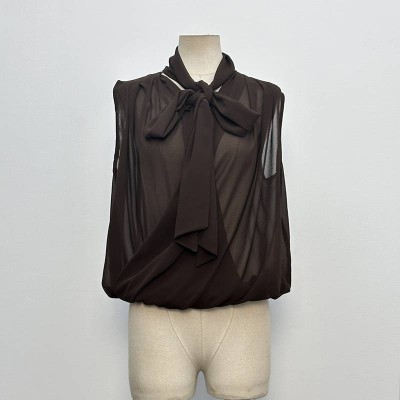 Elegant Bow Tie Neck Sleeveless Chiffon Top Sheer Commute Slim Blouse