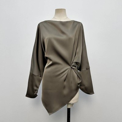 Premium Satin Twist Irregular Hem Long Sleeve Elegant Top