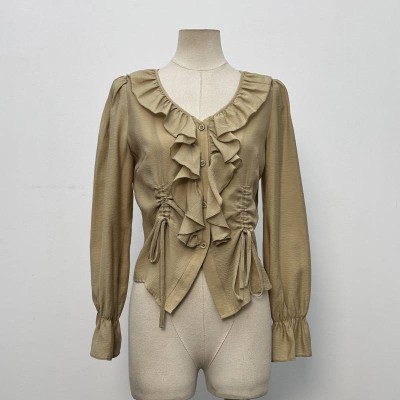 French Ruffled Chiffon Shirt for Women Lapel Long Sleeve See-through Temperament Gentle Top