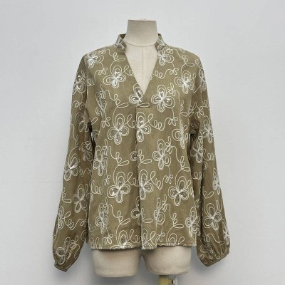Vintage Sequin Embroidered V-neck Stand Collar Loose Long Sleeve Top