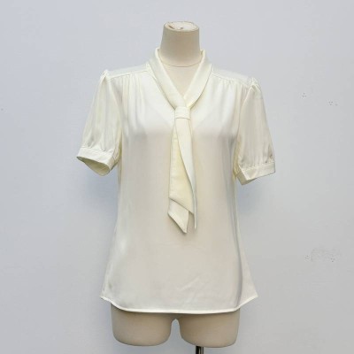 French-style Scarf Collar Short-sleeve Chiffon Shirt Elegant Satin-feel Commute Top