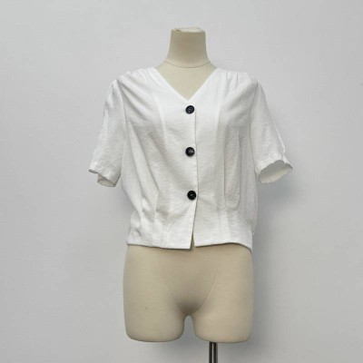 White Satin V-neck Puff Sleeve Cropped Waist Top