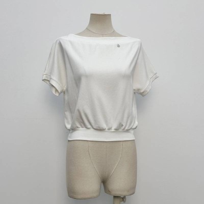 White Batwing Sleeve Waist-cinched Cropped Top Loose Slimming Crew Neck Short Sleeve Top