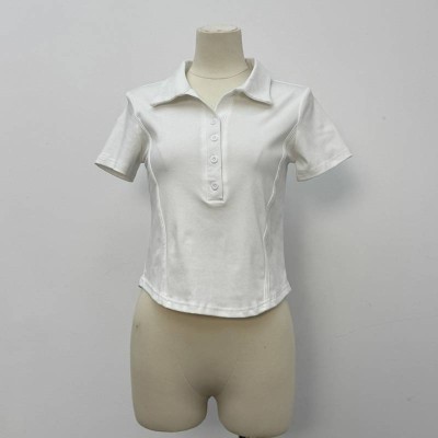 White Short Lapel Short Sleeve Slim Fit Polo Top