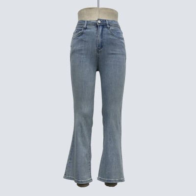 Vintage Washed Flared Jeans High Waist Slim Fit Denim Pants