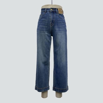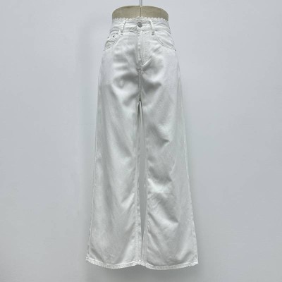 White Lace Waist Wide-Leg Jeans Loose Casual Trousers
