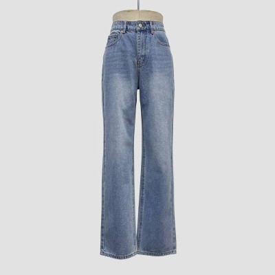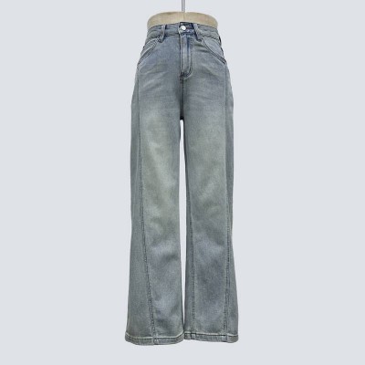 Vintage Washed Wide-Leg Jeans High Waist Slim Straight Long Pants