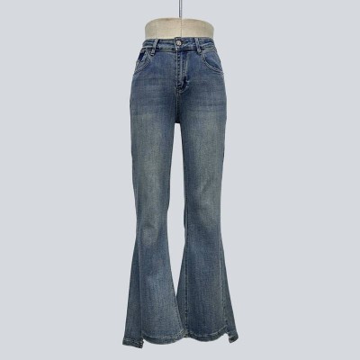 Vintage Washed Flare Jeans High Waist Slim Fit Denim Pants