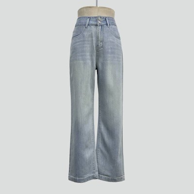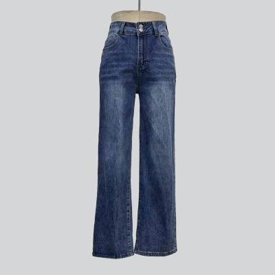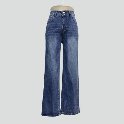 Vintage Blue High Waist Wide Leg Jeans Loose Slim Straight Denim Trousers