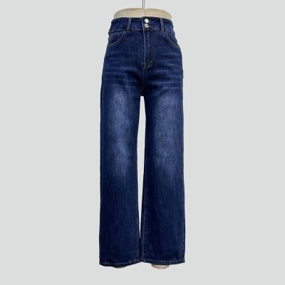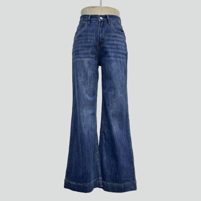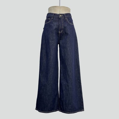 Dark Blue High Waist Wide Leg Jeans Vintage Simple Denim Trousers