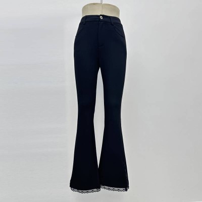 Black Lace Patchwork Flare Casual Pants High Waist Slim Commuter Long Pants
