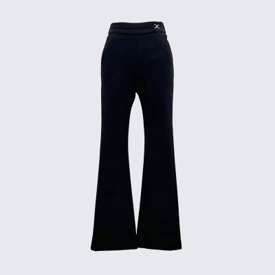 Black High-waisted Flared Casual Pants With Metal Decoration