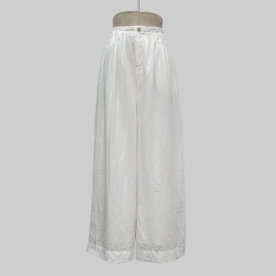 White Linen-like High-waisted Wide-leg Casual Pants