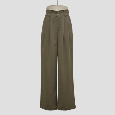 Vintage High Waist Wide-Leg Pants Commuter Slim Casual Trousers