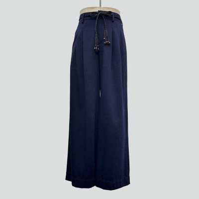 Dark Blue Wide-Leg Trousers with Waist Tie