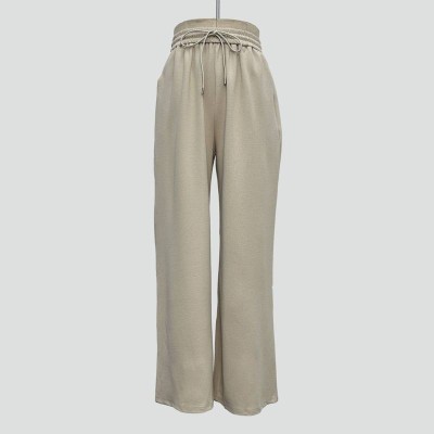Simple Drawstring High Waist Wide-Leg Casual Pants