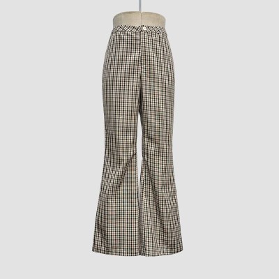Vintage Plaid High Waist Wide-Leg Pants Slim Fit Casual Trousers
