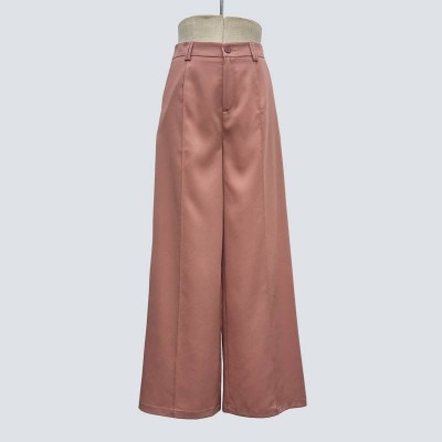 Dusty Rose Dropped Wide-Leg Pants High Waist Slim Fit Commuter Casual Trousers