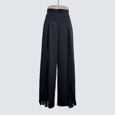 Black Drape Split Wide-Leg Pants High Waist Slimming Casual Trousers